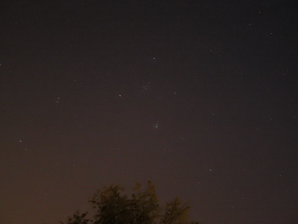 Die Daten für dieses Bild sind wieder 15 Sekunden Belichtugnszeit, 200 ISO, Blende 2.5, f=21mm. Das Bild zeigt Sterne etwa bis zur Größenklasse +7.8 mag. Unter besseren Bedingungen lassen sich mit der Kamera auch schon Sterne der 9. Größenklasse erkennen.