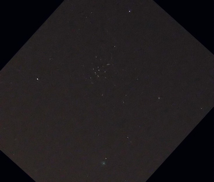 Auch in diesem Bild zeigt der Komet keinen ausgeprägten Schweif, sondern bleibt eher eine etwas diffuse Wolke. Im Fernrohranblick bekam ich den Eindruck, dass diese "Wolke" jedoch nicht kreisförmig sondern deutlich eine etwas längliche Struktur beitzt.