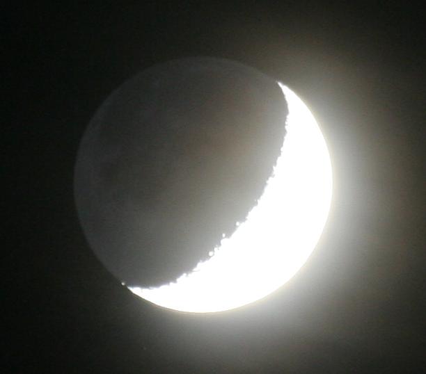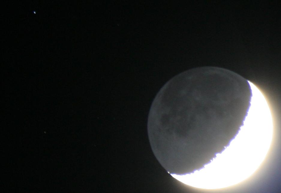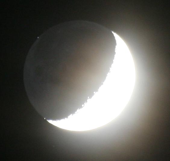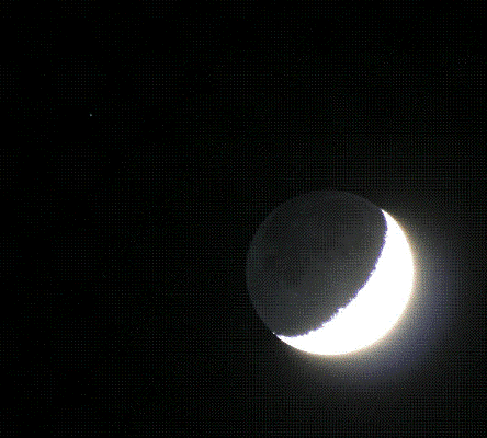 Dafür lassen sie sich gut im Feldstecher beobachten, denn für das bloße Auge überstrahlt der Mond dann doch meist den ja viel schwächer leuchtenden Stern. Günstig ist es natürlich, wenn eine solche Bedeckung bei zunehmendem Mond stattfindet, weil dann der dunkle Teil des Mondes den Stern zuerst bedeckt, er also praktisch "ausgeknipst" wird. Ist der beleuchtete Teil des Monds noch nicht zu groß, wie es jetzt am 2. Mai der Fall war, kann man dabei auch den dunklen Teil des Mondes noch recht gut beobachten, da er sich durch das reflektierte Licht der Erde, doch etwas vom dunkleren Himmelshintergrund abhebt.