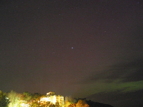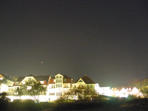 Mars leuchtet hell über den Hotels und Villen des Ortes an der Strandpromenade (wieder 10 sec., Bl. 2.0, 7mm, 400 ASA). Deren Licht überstrahlt jedoch alles, was in dieser Richtung auf Polarlicht hindeuten könnte. Doch in meinen Augenwinkeln sah ich schon etwas ganz anderes: