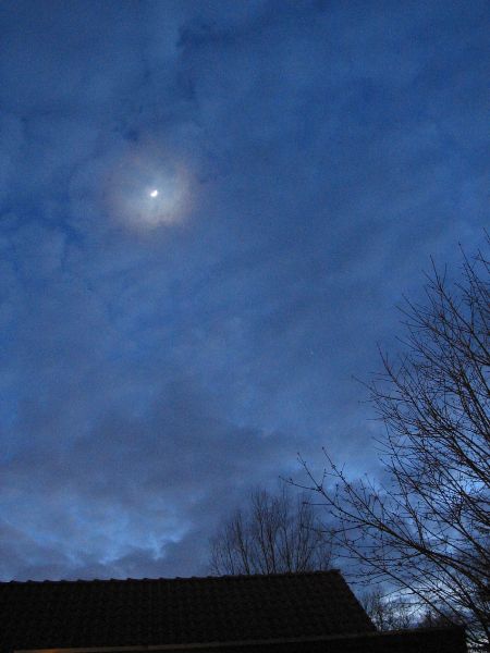 Am 26. März war der Himmel leider stark bewölkt. Der Mond schaffte es noch manchmal durch die Wolken, die Venus war nur ganz selten mal auszumachen. Andere Sterne waren gar nicht zu sehen.