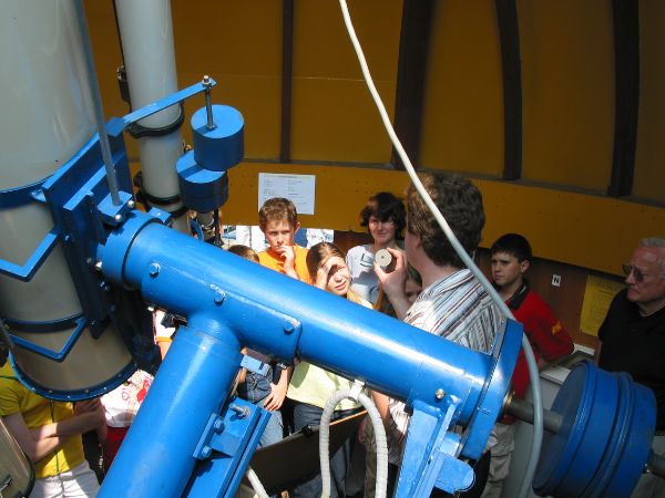 In der Hand von Michael ein durchgeschmorter Schutzdeckel (eine eindrucksvolle Warnung vor falscher Handhabung eines Fernrohrs!)